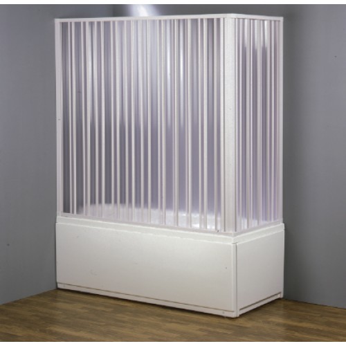 Box vasca in PVC a due lati, dotato di apertura angolare a soffietto. Ideale per l’installazione su vasca posizionata ad angolo tra due pareti.