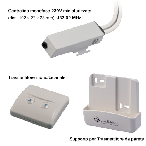 - Centralina monofase 230V miniaturizzata (dim. 102 x 27 x 23 mm);