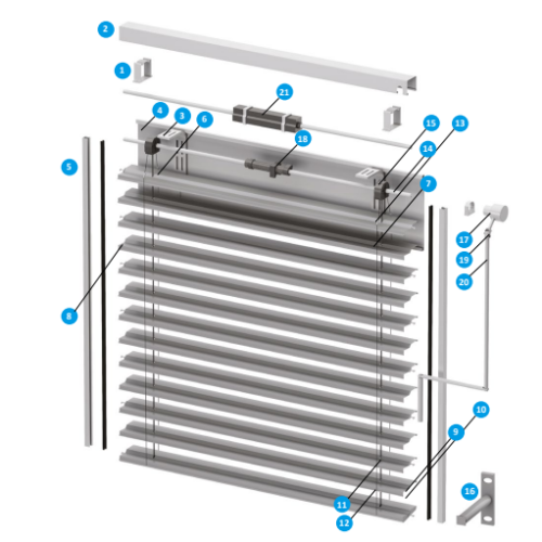 Le lamelle possono essere orientate in ogni posizione con movimento a 90° con un oscuramento fino al 90% con un gradevole impatto estetico. Inoltre, è possibile dotarle sia di manovra ad argano e sia a motore.