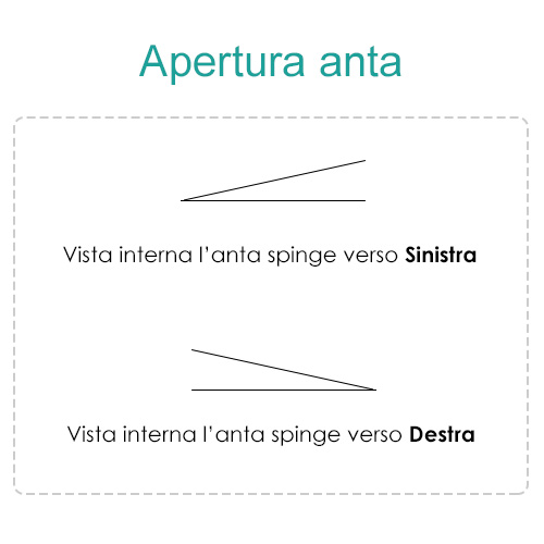 Le cerniere sono a vista e sono presenti rostri antistrappo inseriti nel bordo dell’anta .