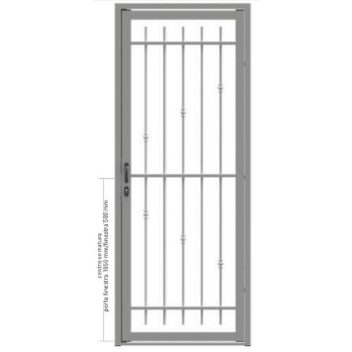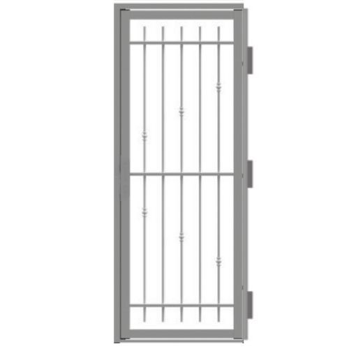Grata in ferro ad anta unica, disponibile con Telaio a L (apertura a 90°) o a Z (apertura a 180°). Gli incroci tra elementi verticali e orizzontali le conferiscono un aspetto unico.