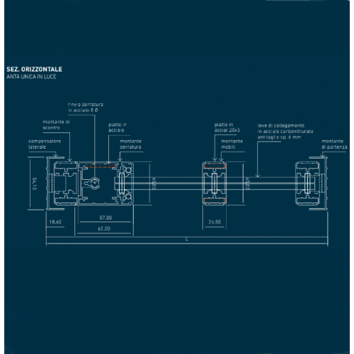- Montante serratura con blindatura interna con tondini girevoli antitaglio Ø 5 mm