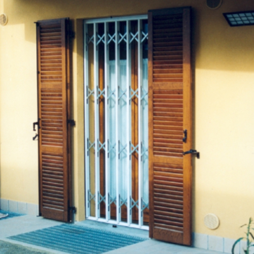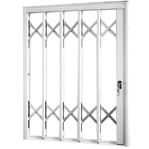 Le grate di sicurezza scorrevoli su misura nella versione ad anta unica in luce sono inferriate a soffietto realizzate esternamente in alluminio (resistente agenti atmosferici e di facile manutenzione) e all’interno da tondini anti taglio in acciaio per il massimo della sicurezza.