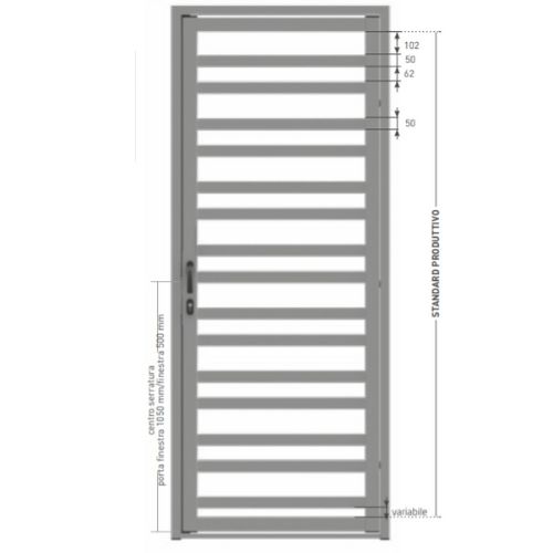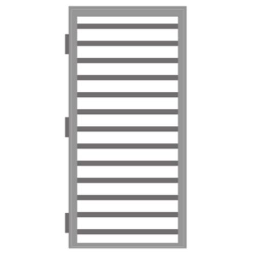 Grata in ferro a un'anta dal design elegante, disponibile con Telaio a L (apertura a 90°) o a Z(apertura a 180°).