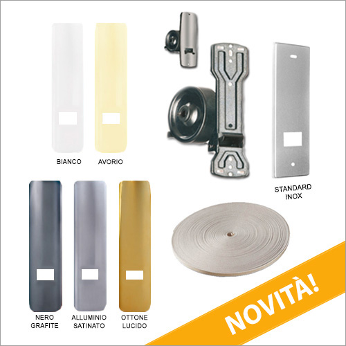 - n. 5 Placche Universali copri avvolgitore con clips in plastica disponibili in 5 colori: sistema brevettato senza viti che permette di compensare le differenze della muratura;