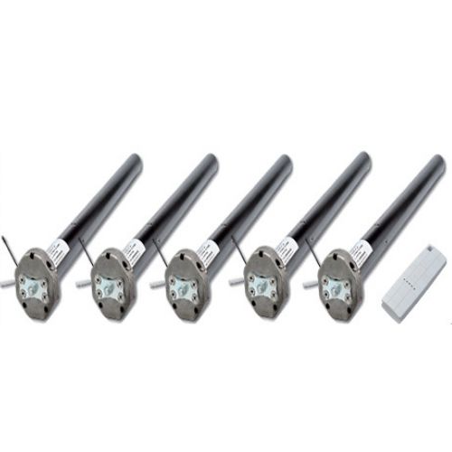 Il Set comprende: 5 motori tapparelle e tende da sole completi di adattatori per rullo di avvolgimento, perni, staffe di fissaggio (fissa gratis e regolabile con supplemento), telecomando a 1 canale da 433MHz (uno per ogni motore), snodo con anello per aggancio (uno per ogni motore), più un telecomando a 5 canali e un’asta di manovra manuale.