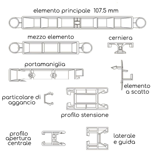 Le porte a soffietto Rogiamstore con apertura centrale, è possibile sceglierle dal menù a tendina.