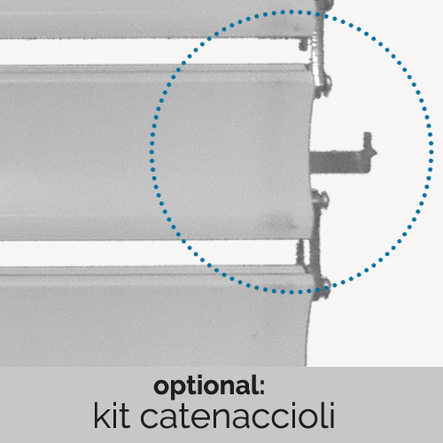 Le tapparelle in alluminio blindate antiscasso si personalizzano anche con diverse verniciature dalla finitura ruvida e opaca disponibili in colori standard e speciali. Sono dotate di serie di aggancio in acciaio e di Kit antisollevamento e di catenacci di colore nero posizionati sulla terza stecca partendo dal basso, per il massimo della sicurezza ed obbligatori per ottenere certificazione antieffrazione).
