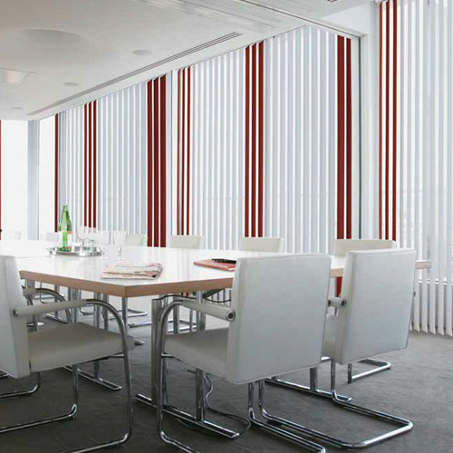Tende a bande verticali con azionamento a doppio comando dal sistema compatto con apertura a corda ed orientamento a catenella.