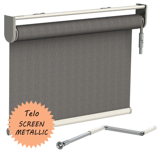 In questa versione, con telo Screen Metallic, la tenda a rullo è realizzata con un nuovissimo tessuto che presenta un lato argentato effetto metallico in grado di riflettere la luce in entrata, proteggendo dai raggi solari e dal calore, ma lasciando filtrare all’interno degli ambienti una piacevolissima luce soffusa.