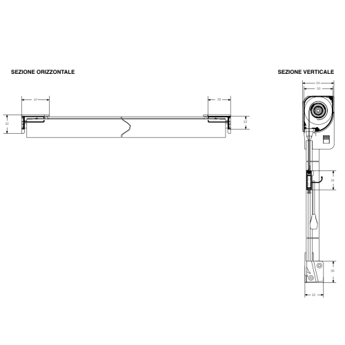 - Cassonetto tondeggiante da 55 mm per uno spazio di installazione minimo di 60 mm;