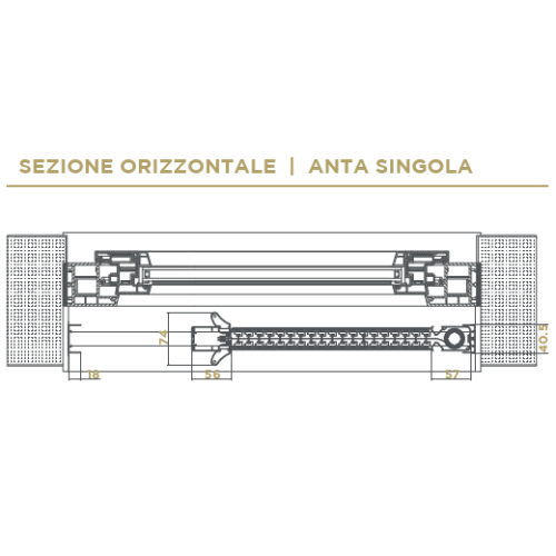 In caso di eventuali fuori squadro, grazie a degli accessori a supplemento, si può compensare fino a 8mm con le la baionetta regolabile (non è possibile installarla su apertura bi-laterale) e fino a 4mm con le cuffie del profilo superiore di compensazione.
