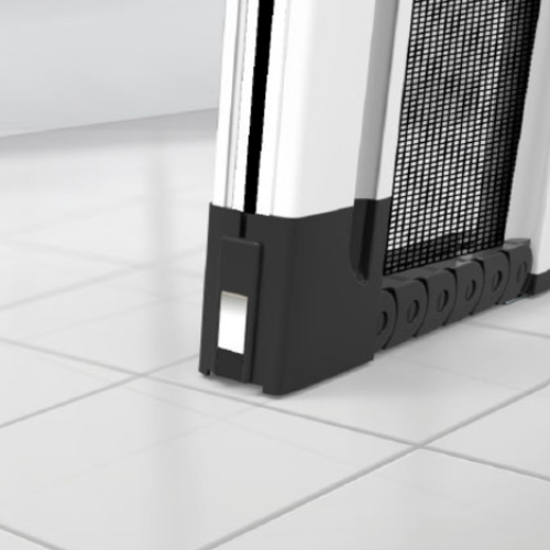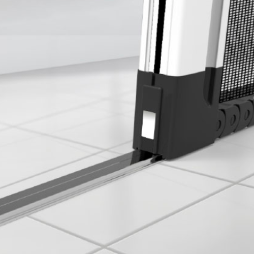 La zanzariera laterale Libera è dotata di un compensatore superiore telescopico che garantisce il perfetto azionamento compensando fino a 10mm in altezza e uno laterale compensando fino a 14mm in larghezza
