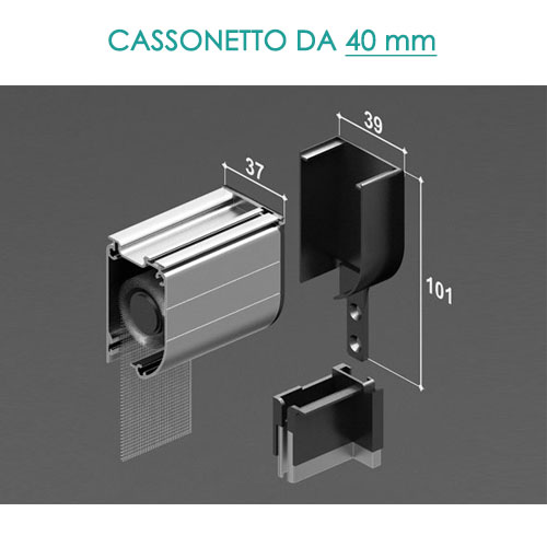 NB. Il cassonetto da 40mm può essere selezionato solo fino a misure in altezza di 150cm, superato questo limite, per le zanzariere acquistate verrà automaticamente inserito il cassonetto da 50mm tondo.
