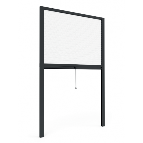 Zanzariere Plissé verticale con scorrimento dall'alto verso il basso manualmente dalla barra maniglia o con asta di movimentazione. Consigliata sia per finestre che per porte.