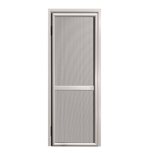 Zanzariera a porta su misura realizzata in alluminio, con anta a battente. Questa zanzariera a porta battente dotata di chiusura magnetica è adattabile a tutti i tipi di porte-finestre ed è acquistabile con le seguenti opzioni: