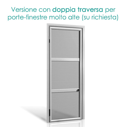 *Possibilità di inserire nella parte inferiore una gattaiola per facilitare l’accesso di animali domestici (richiesta su preventivo). In caso di scelta di questo modello è consigliabile inserire nella parte inferiore del pannello, o su tutta la zanzariera, la rete Pet screen molto più resistente di quella in alluminio.