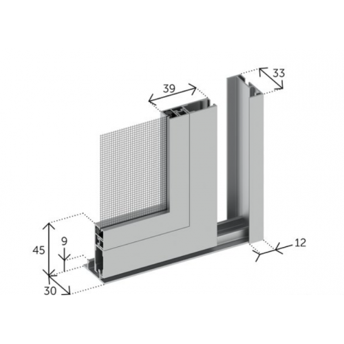 La zanzariera con ingombro ridotto scorrevole ha la possibilità di avere un binario inferiore di 9 mm o un binario inferiore di 30 mm.